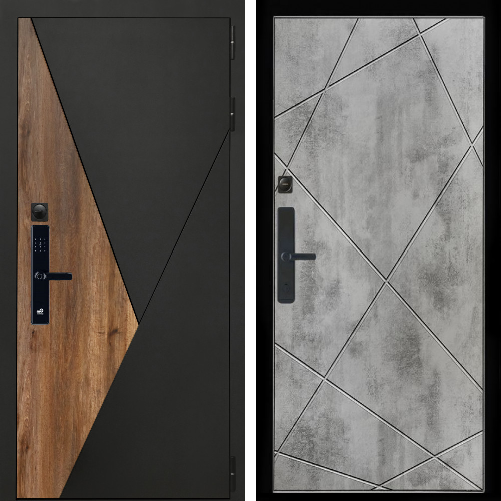 Входная дверь • Габаритные размеры: 2050x860 мм, 2050x960 мм • Металл 1.8мм. Черная шагрень • Внешнее покрытие: МДФ 12 мм. • Толщина полотна: 115 мм. • Толщина коробки: 120 мм. • Короб закрытого типа, утепленный • Уплотнитель: 3 контура • Два вертикальных ребра жесткости • ЭЛЕКТРОННЫЙ ЗАМОК НА ВЫБОР • Замок дополнительный: Гардиан 6001 • Врезная броненакладка • Пазы на коробке под доборы • Независимая задвижка есть • Фурнитура ЧЕРНАЯ