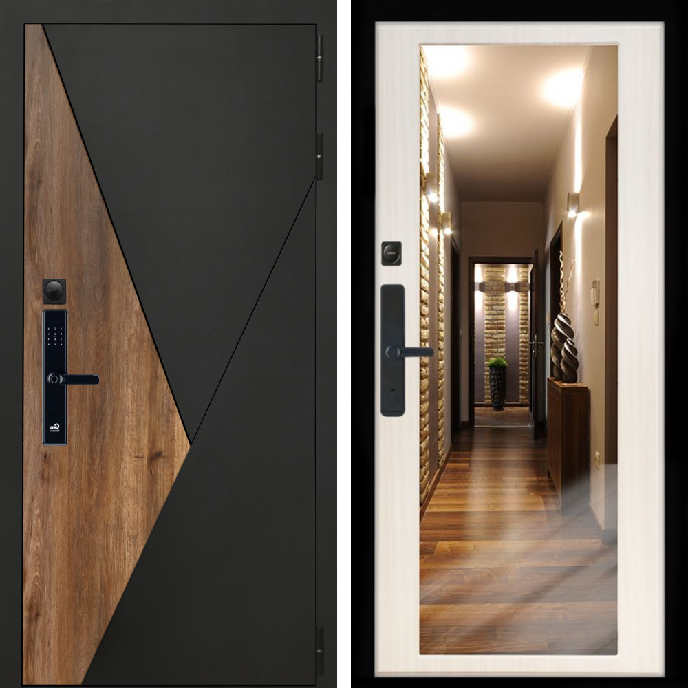 Входная дверь • Габаритные размеры: 2050x860 мм, 2050x960 мм • Металл 1.8мм. Черная шагрень • Внешнее покрытие: МДФ 12 мм. • Толщина полотна: 115 мм. • Толщина коробки: 120 мм. • Короб закрытого типа, утепленный • Уплотнитель: 3 контура • Два вертикальных ребра жесткости • ЭЛЕКТРОННЫЙ ЗАМОК НА ВЫБОР • Замок дополнительный: Гардиан 6001 • Врезная броненакладка • Пазы на коробке под доборы • Независимая задвижка есть • Фурнитура ЧЕРНАЯ ..