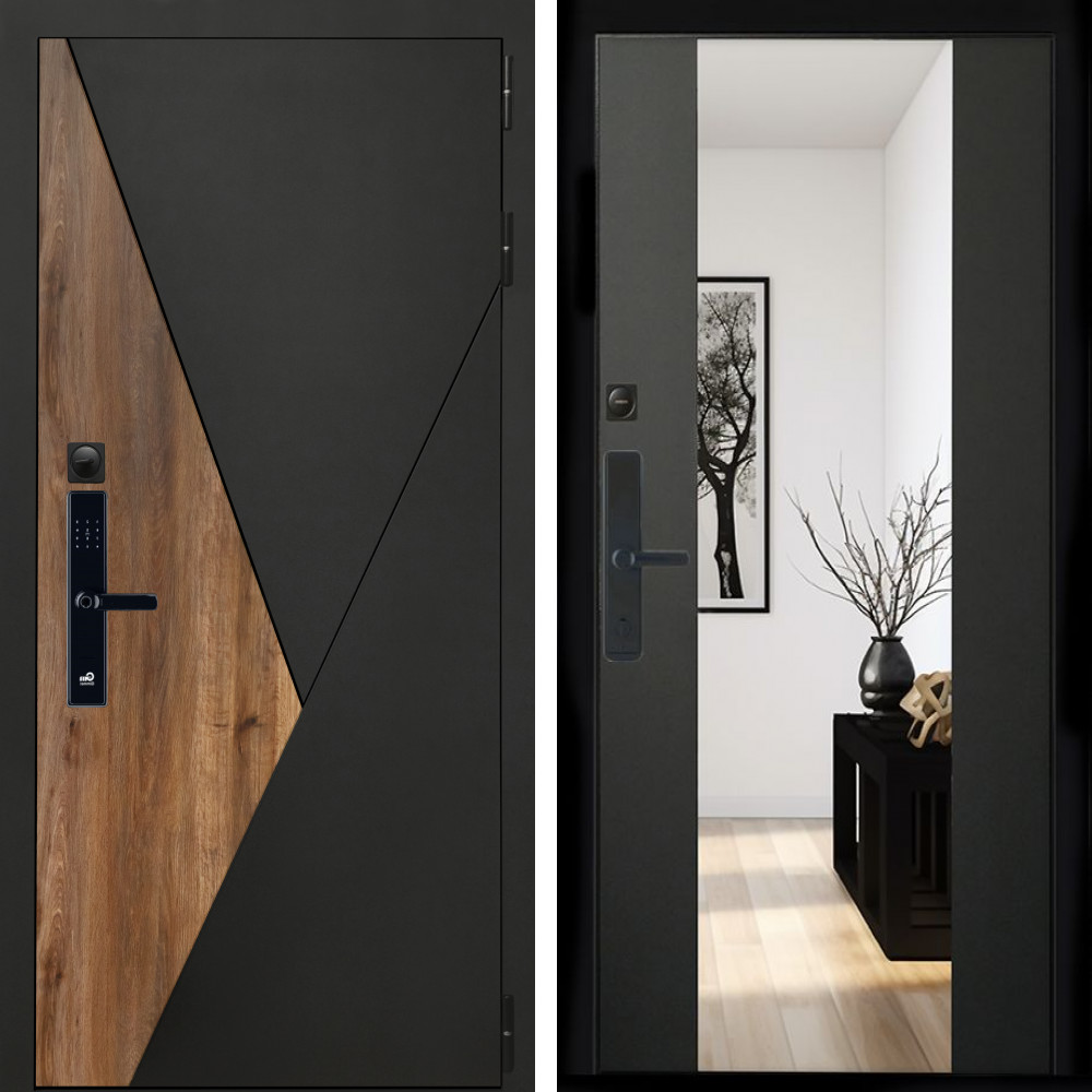 Входная дверь Inteko Гранит SMART + Зеркало сб-16 черный кварц