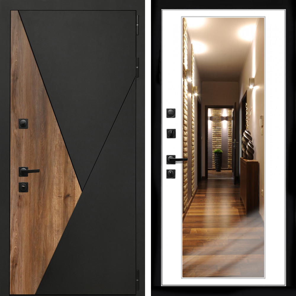 Входная дверь • Габаритные размеры: 2050x860 мм, 2050x960 мм • Металл 1.8мм. Черная шагрень • Внешнее покрытие: МДФ 12 мм. • Толщина полотна: 115 мм. • Толщина коробки: 120 мм. • Короб закрытого типа, утепленный • Уплотнитель: 3 контура • Два вертикальных ребра жесткости • ЭЛЕКТРОННЫЙ ЗАМОК НА ВЫБОР • Замок дополнительный: Гардиан 6001 • Врезная броненакладка • Пазы на коробке под доборы • Независимая задвижка есть • Фурнитура ЧЕРНАЯ ..