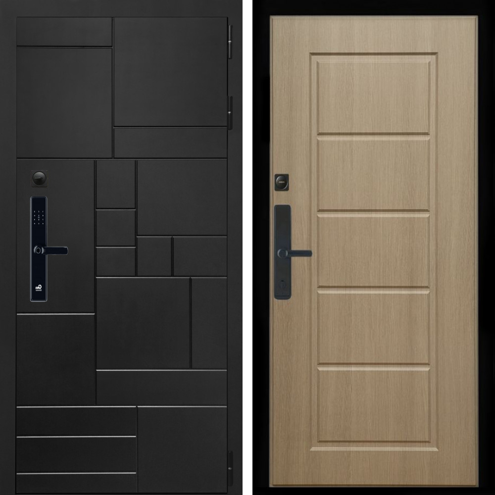 Входная дверь • Габаритные размеры: 2050x860 мм, 2050x960 мм • Металл 1.8мм. Черная шагрень • Внешнее покрытие: МДФ 12 мм. • Толщина полотна: 115 мм. • Толщина коробки: 120 мм. • Короб закрытого типа, утепленный • Уплотнитель: 3 контура • Два вертикальных ребра жесткости • ЭЛЕКТРОННЫЙ ЗАМОК НА ВЫБОР • Замок дополнительный: Гардиан 6001 • Врезная броненакладка • Пазы на коробке под доборы • Независимая задвижка есть • Фурнитура ЧЕРНАЯ ..