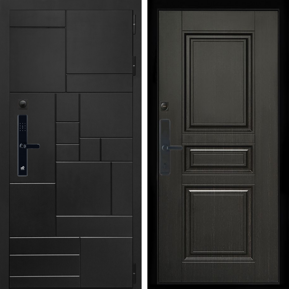 Входная дверь • Габаритные размеры: 2050x860 мм, 2050x960 мм • Металл 1.8мм. Черная шагрень • Внешнее покрытие: МДФ 12 мм. • Толщина полотна: 115 мм. • Толщина коробки: 120 мм. • Короб закрытого типа, утепленный • Уплотнитель: 3 контура • Два вертикальных ребра жесткости • ЭЛЕКТРОННЫЙ ЗАМОК НА ВЫБОР • Замок дополнительный: Гардиан 6001 • Врезная броненакладка • Пазы на коробке под доборы • Независимая задвижка есть • Фурнитура ЧЕРНАЯ ..