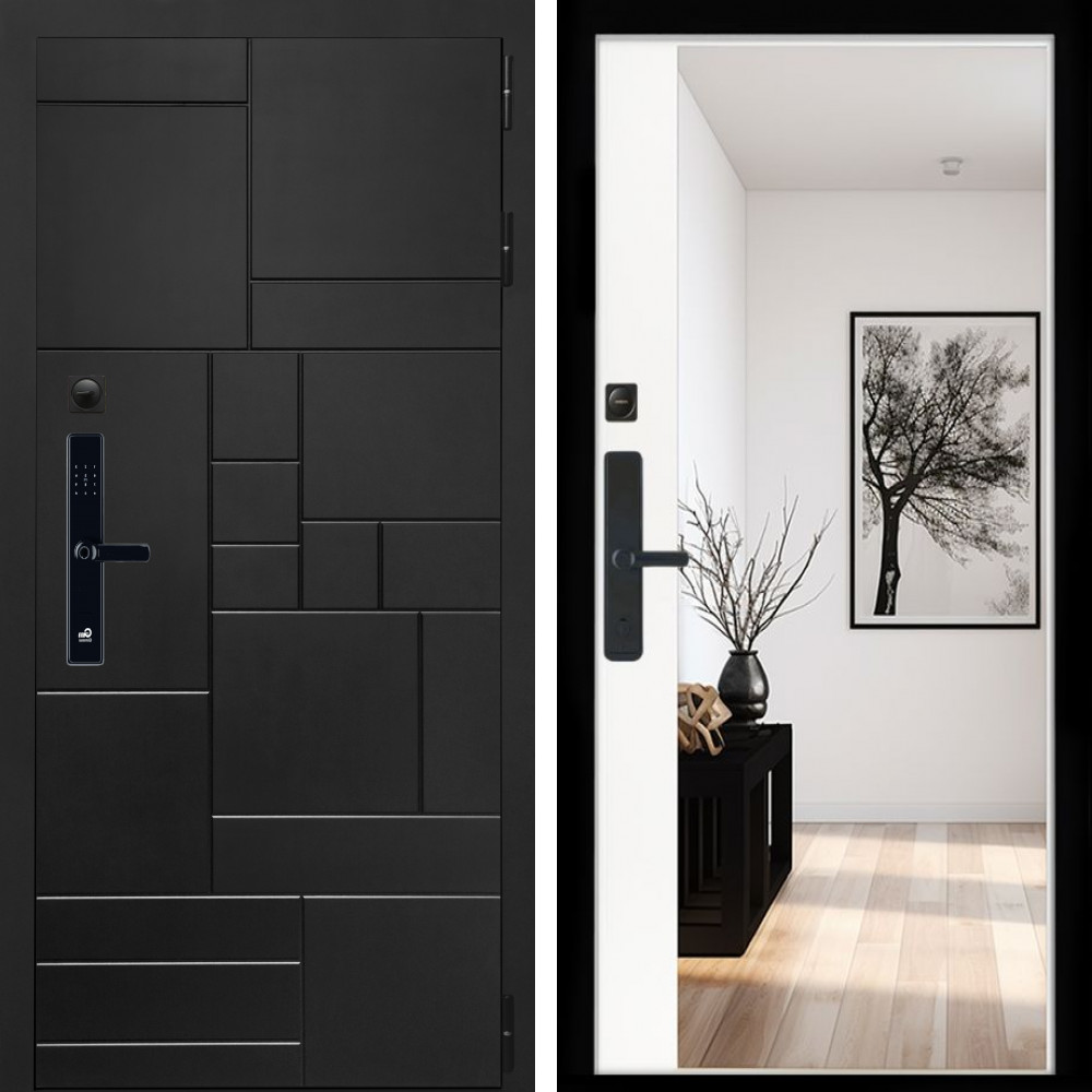 Входная дверь Inteko Квадро SMART + Зеркало панорама Белый софт