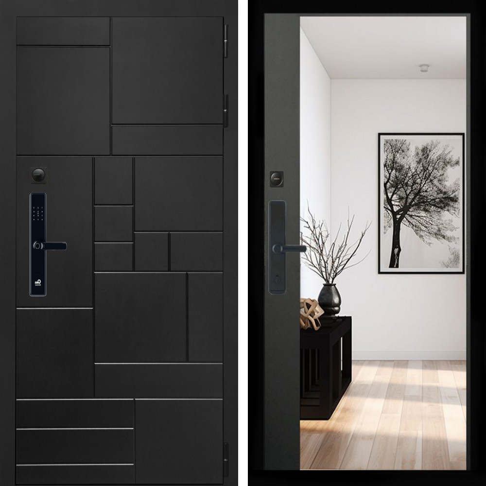 Входная дверь Inteko Квадро SMART + Зеркало панорама Черный кварц