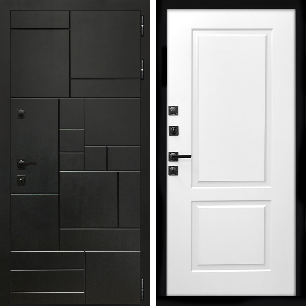 Входная дверь • Габаритные размеры: 2050x860 мм, 2050x960 мм • Металл 1.5мм. • Внешнее покрытие: МДФ 12 мм. • Цвет покрытия: Черный кварц. • Толщина полотна: 100 мм. • Толщина коробки: 105 мм. • Окрас короба:Черная шагрень. • Короб закрытого типа, утепленный. • Уплотнитель: 3 контура. • Два вертикальных ребра жесткости. • Замок основной: Guardian 3211 (цилиндровый). • Замок дополнительный: Guardian 300 • Врезная броненакладка. • Независимая задвижка есть. • Фурнитура Черная. ..