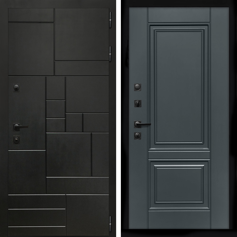 Входная дверь • Габаритные размеры: 2050x860 мм, 2050x960 мм • Металл 1.5мм. • Внешнее покрытие: МДФ 12 мм. • Цвет покрытия: Графит. • Толщина полотна: 100 мм. • Толщина коробки: 105 мм. • Окрас короба:Черная шагрень. • Короб закрытого типа, утепленный. • Уплотнитель: 3 контура. • Два вертикальных ребра жесткости. • Замок основной: Guardian 3211 (цилиндровый). • Замок дополнительный: Guardian 300 • Врезная броненакладка. • Независимая задвижка есть. • Фурнитура Черная. ..