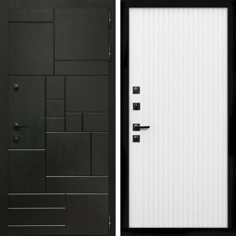 Входная дверь • Габаритные размеры: 2050x860 мм, 2050x960 мм • Металл 1.5мм. • Внешнее покрытие: МДФ 12 мм. • Цвет покрытия: Черный кварц. • Толщина полотна: 100 мм. • Толщина коробки: 105 мм. • Окрас короба:Черная шагрень. • Короб закрытого типа, утепленный. • Уплотнитель: 3 контура. • Два вертикальных ребра жесткости. • Замок основной: Guardian 3211 (цилиндровый). • Замок дополнительный: Guardian 300 • Врезная броненакладка. • Независимая задвижка есть. • Фурнитура Черная. ..