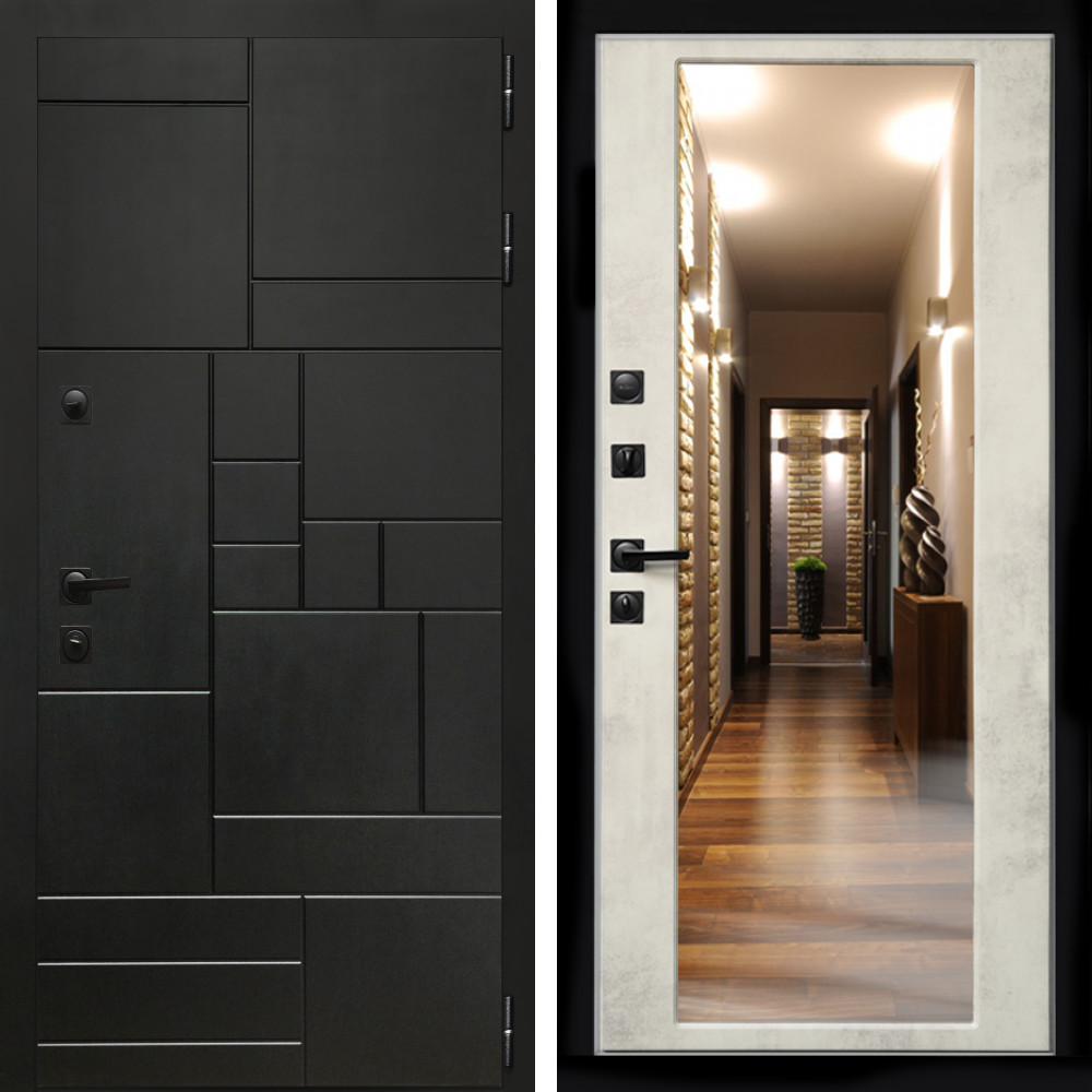 Входная дверь Inteko Квадро + Зеркало бетон светлый