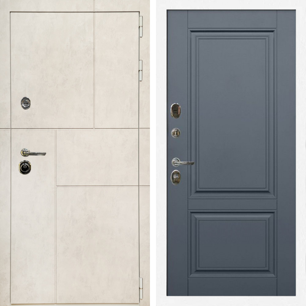 Входная дверь Inteko Лофт Бетон Светлый + ФЛ-117 с полосками графит
