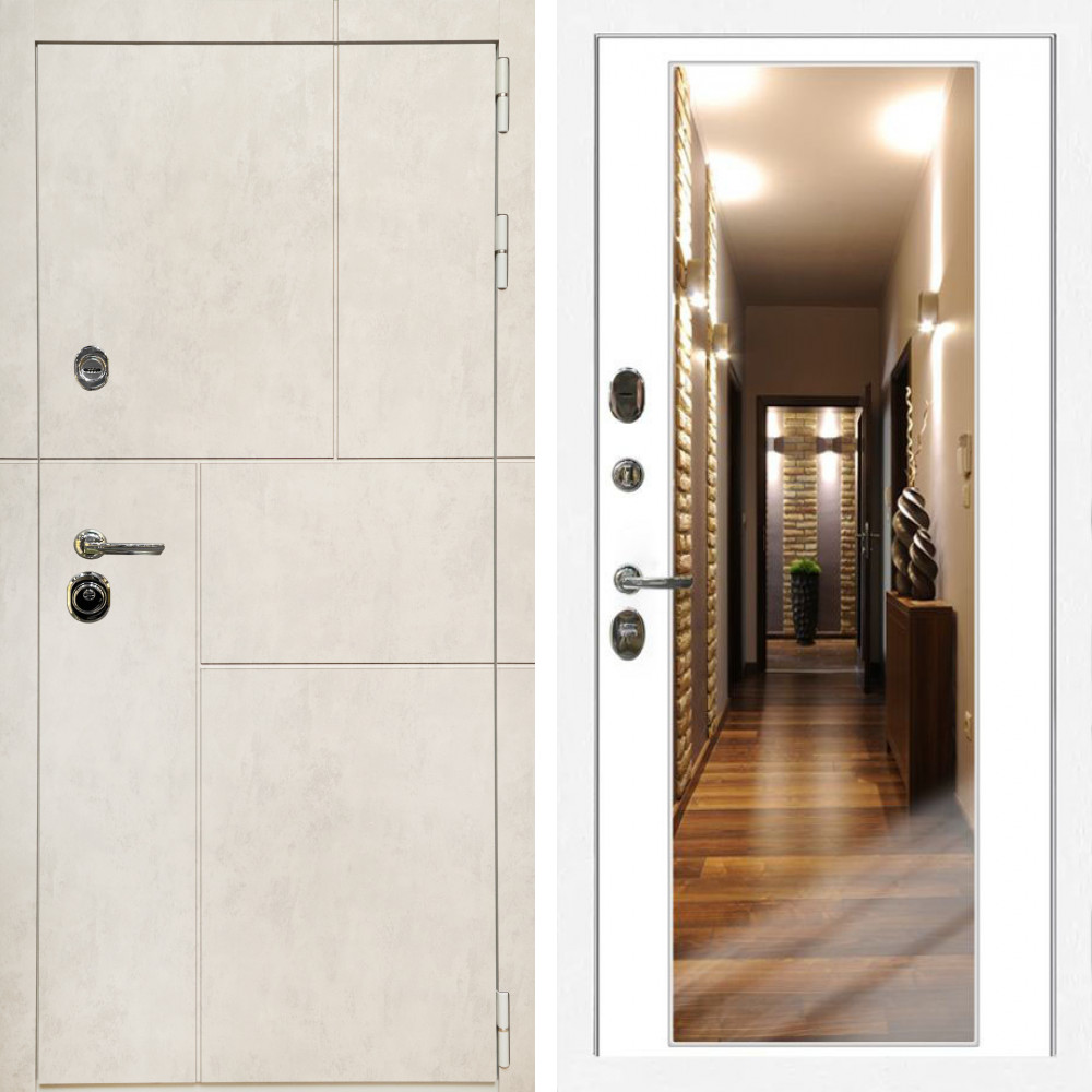 Входная дверь Inteko Лофт Бетон Светлый + Зеркало белый софт