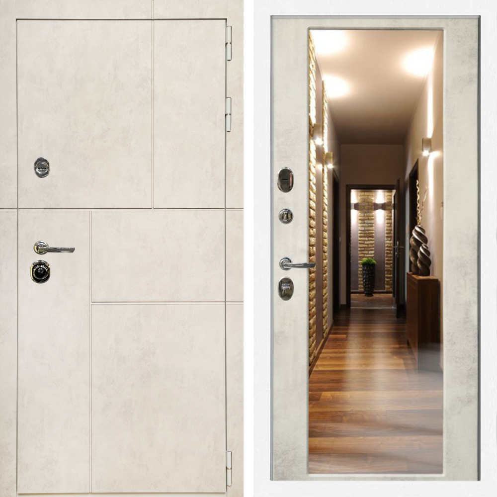 Входная дверь Inteko Лофт Бетон Светлый + Зеркало бетон светлый