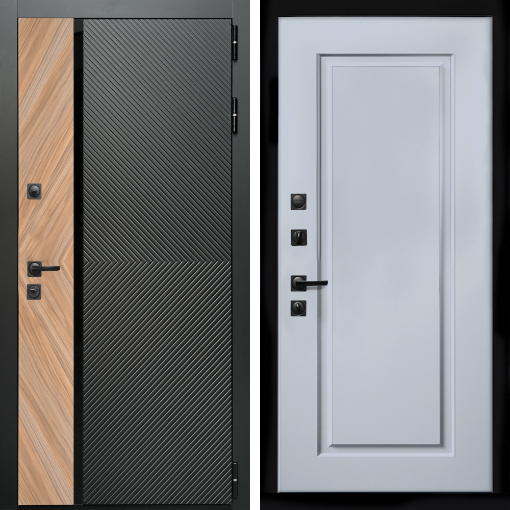Входная дверь Inteko Оникс с стеклянной черной вставкой + ФЛ-119 силк маус
