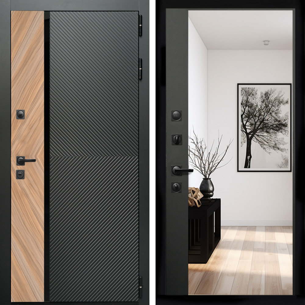 Входная дверь Inteko Оникс с стеклянной черной вставкой + Зеркало панорама Черный кварц