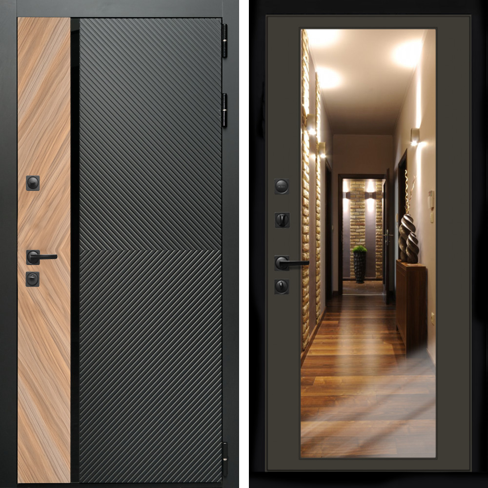 Входная дверь Inteko Оникс с стеклянной черной вставкой + Зеркало венге