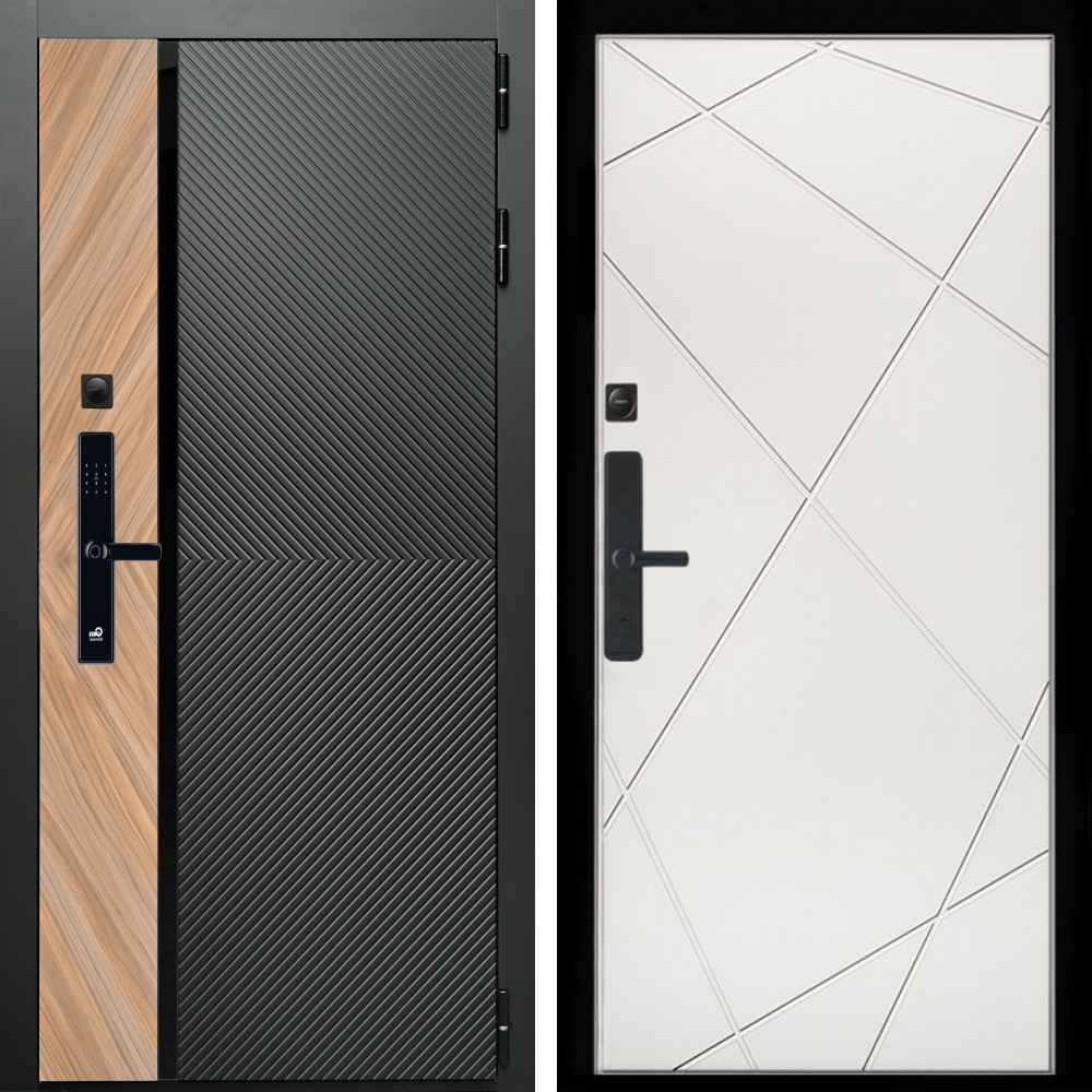 Входная дверь • Габаритные размеры: 2050x860 мм, 2050x960 мм • Металл 1.8мм. Черная шагрень • Внешнее покрытие: МДФ 12 мм. • Толщина полотна: 115 мм. • Толщина коробки: 120 мм. • Короб закрытого типа, утепленный • Уплотнитель: 3 контура • Два вертикальных ребра жесткости • ЭЛЕКТРОННЫЙ ЗАМОК НА ВЫБОР • Замок дополнительный: Гардиан 6001 • Врезная броненакладка • Пазы на коробке под доборы • Независимая задвижка есть • Фурнитура ЧЕРНАЯ ..