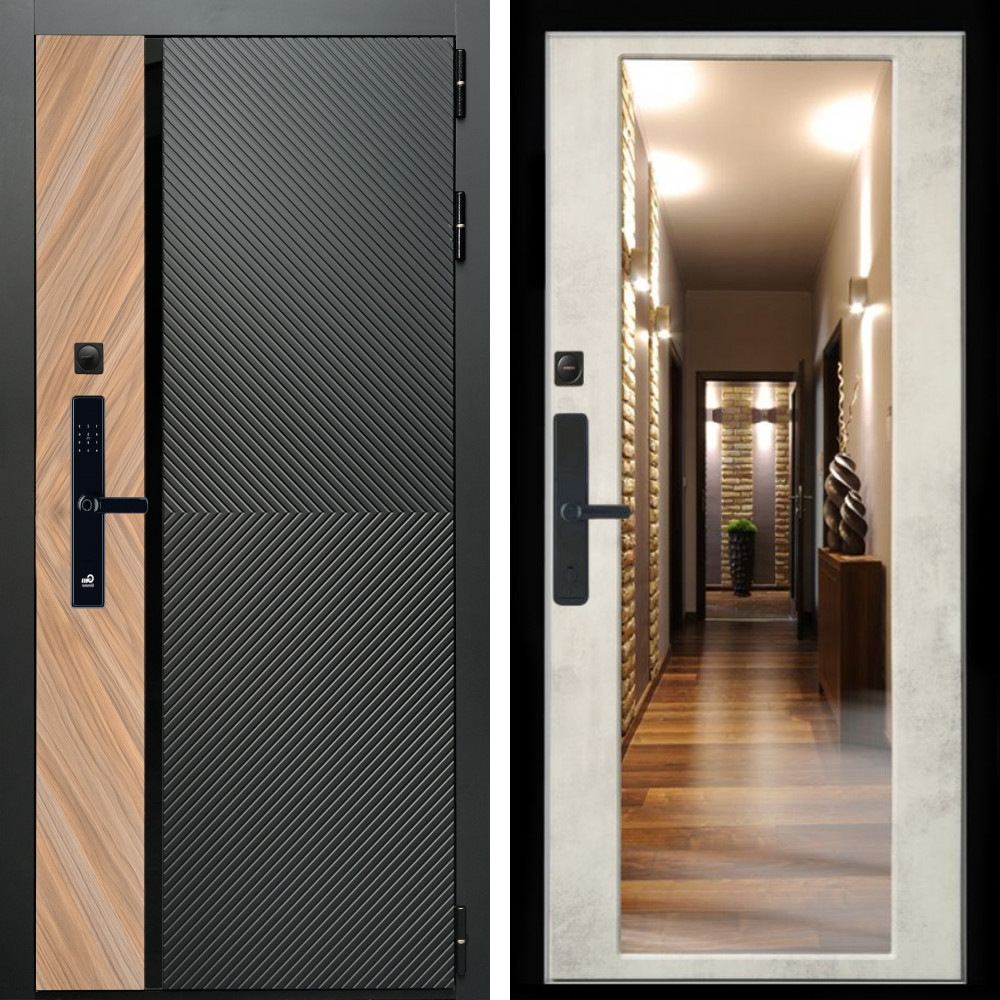 Входная дверь Inteko Оникс SMART + Зеркало бетон светлый