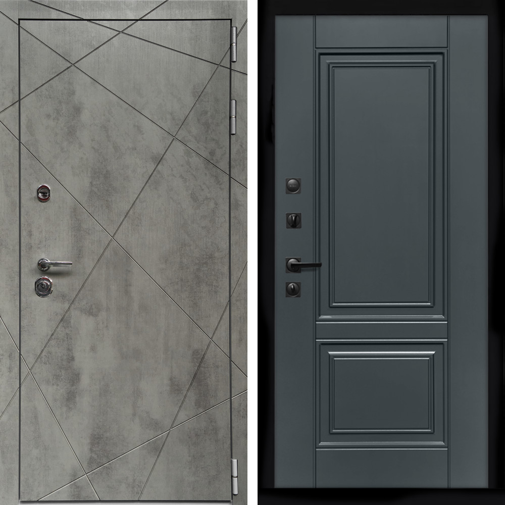 Входная дверь Inteko Премиум Бетон Темный + ФЛ-117 с полосками графит