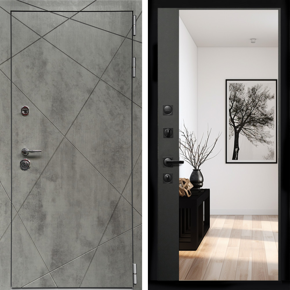 Входная дверь Inteko Премиум Бетон Темный + Зеркало панорама Черный кварц