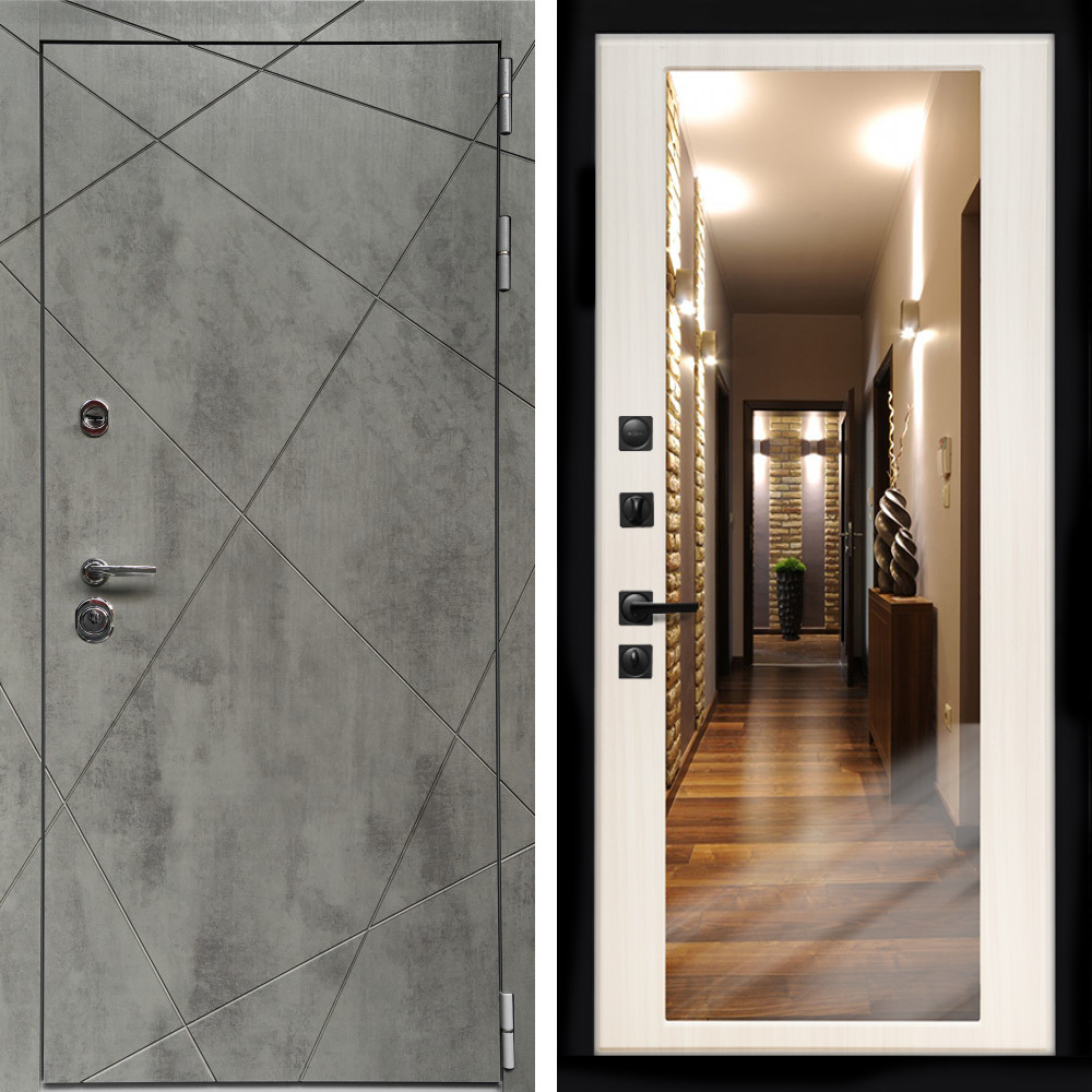 Входная дверь Inteko Премиум Бетон Темный + Зеркало сандал белый