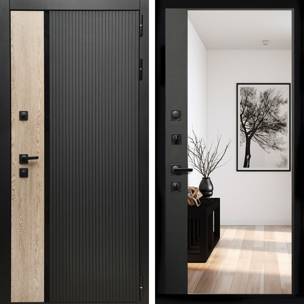 Входная дверь Inteko Престиж с стеклянной черной вставкой + Зеркало панорама Черный кварц