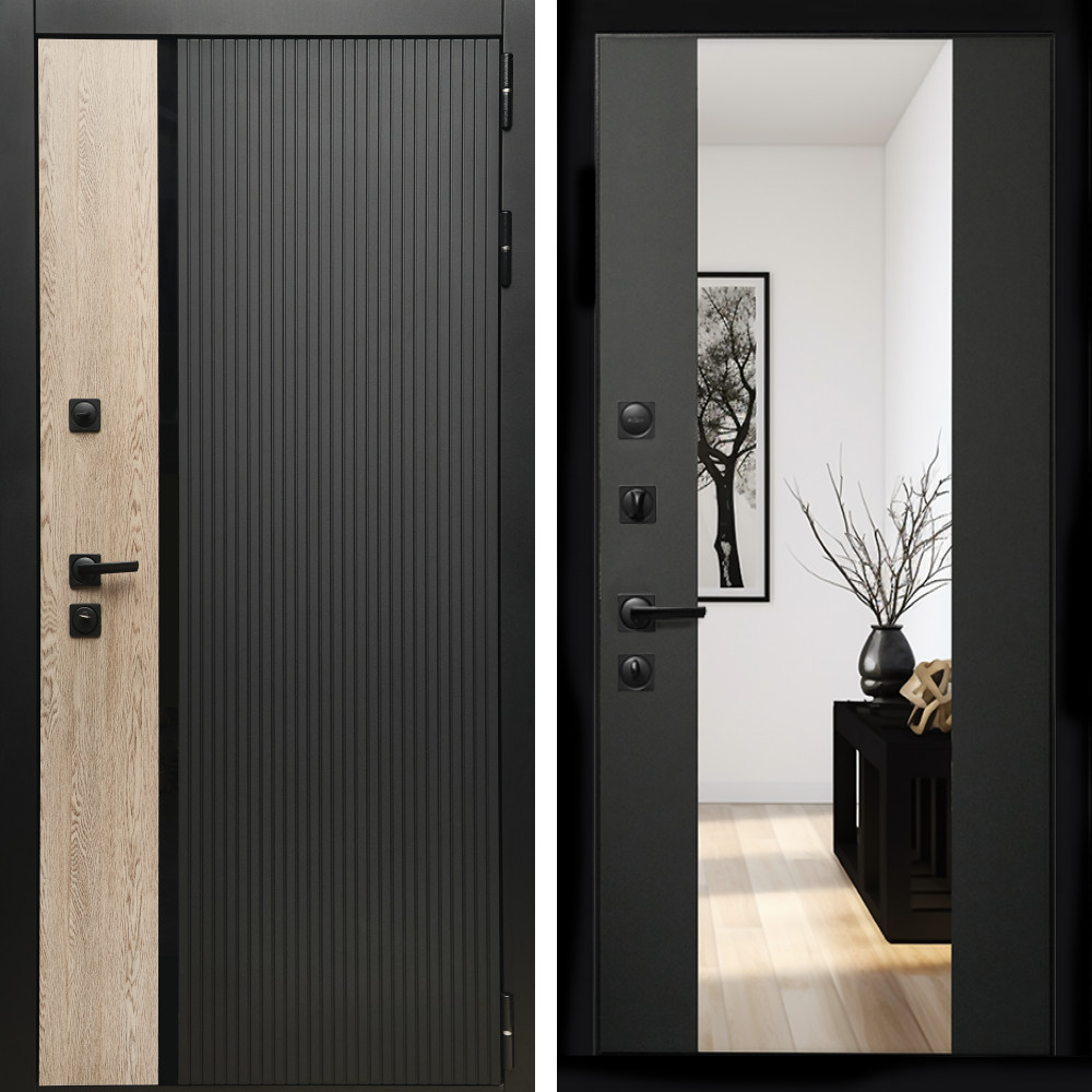 Входная дверь Inteko Престиж с стеклянной черной вставкой + Зеркало сб-16 черный кварц
