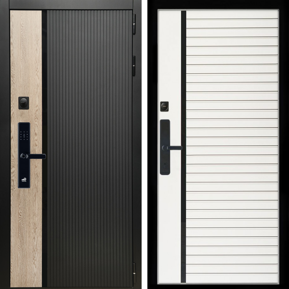 Входная дверь • Габаритные размеры: 2050x860 мм, 2050x960 мм • Металл 1.8мм • Внешнее покрытие: МДФ 16 мм. • Толщина полотна: 115 мм. • Толщина коробки: 120 мм. • Короб закрытого типа, утепленный • Уплотнитель: 3 контура • Два вертикальных ребра жесткости • Замок основной: Гардиан 6211 с блокировкой язычка • Замок дополнительный: Гардиан 6001 • Врезная броненакладка • Пазы на коробке под доборы • Независимая задвижка есть • Фурнитура Хром ..