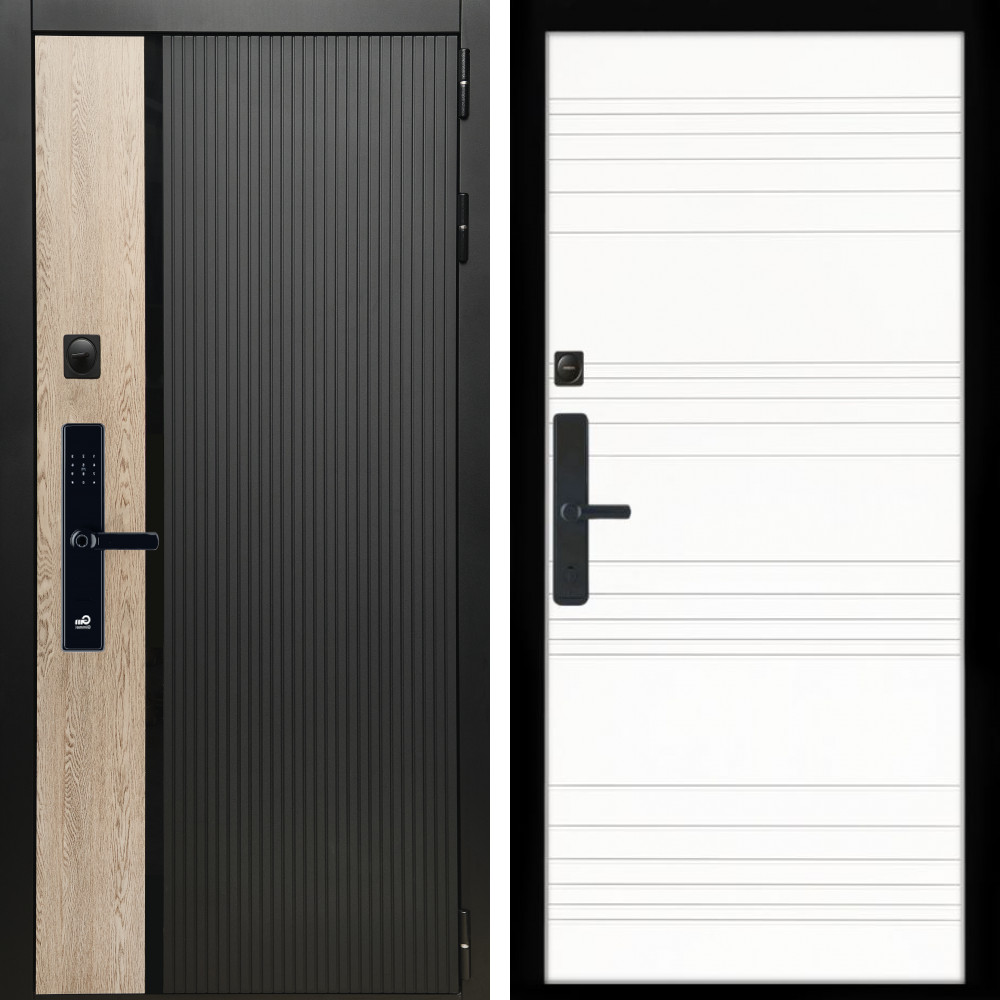 Входная дверь • Габаритные размеры: 2050x860 мм, 2050x960 мм • Металл 1.8мм • Внешнее покрытие: МДФ 16 мм. • Толщина полотна: 115 мм. • Толщина коробки: 120 мм. • Короб закрытого типа, утепленный • Уплотнитель: 3 контура • Два вертикальных ребра жесткости • Замок основной: Гардиан 6211 с блокировкой язычка • Замок дополнительный: Гардиан 6001 • Врезная броненакладка • Пазы на коробке под доборы • Независимая задвижка есть • Фурнитура ХРОМ ..