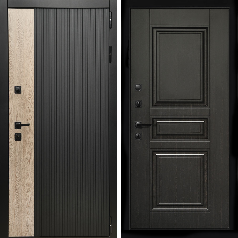 Входная дверь • Габаритные размеры: 2050x860 мм, 2050x960 мм • Металл 1.8мм. Черная шагрень • Внешнее покрытие: МДФ 12 мм. • Толщина полотна: 115 мм. • Толщина коробки: 120 мм. • Короб закрытого типа, утепленный • Уплотнитель: 3 контура • Два вертикальных ребра жесткости • ЭЛЕКТРОННЫЙ ЗАМОК НА ВЫБОР • Замок дополнительный: Гардиан 6001 • Врезная броненакладка • Пазы на коробке под доборы • Независимая задвижка есть • Фурнитура ЧЕРНАЯ ..