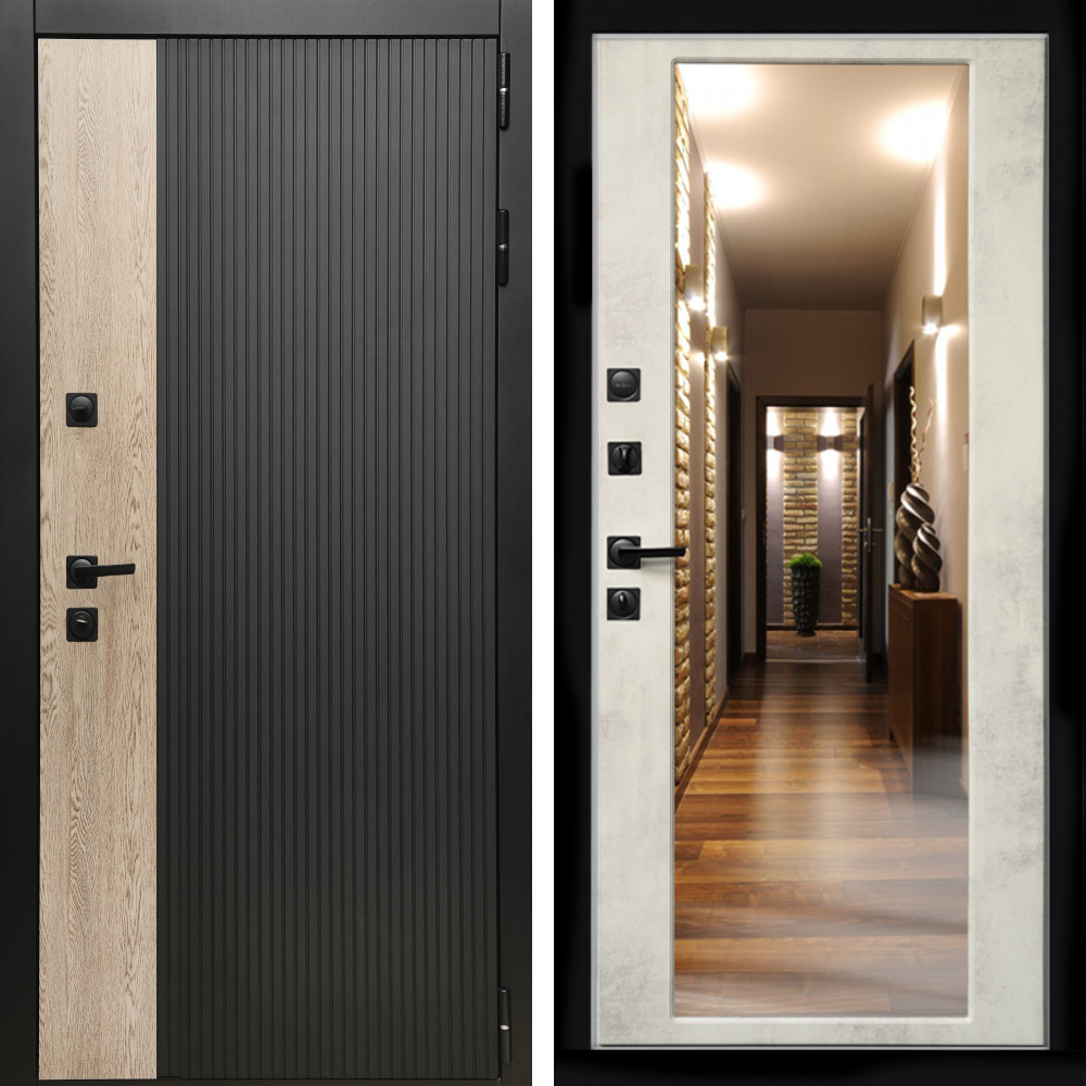 Входная дверь Inteko Престиж + Зеркало бетон светлый