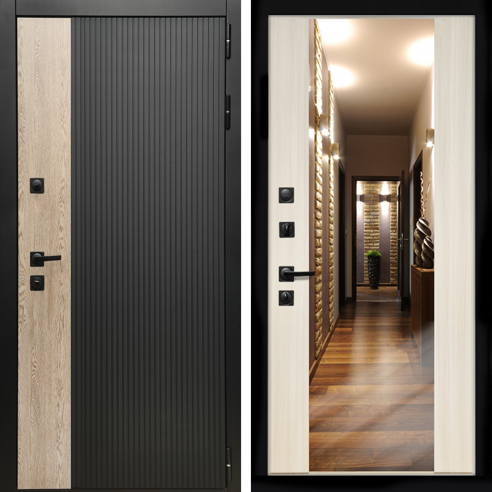 Входная дверь • Габаритные размеры: 2050x860 мм, 2050x960 мм • Металл 1.8мм. Черная шагрень • Внешнее покрытие: МДФ 12 мм. • Толщина полотна: 115 мм. • Толщина коробки: 120 мм. • Короб закрытого типа, утепленный • Уплотнитель: 3 контура • Два вертикальных ребра жесткости • ЭЛЕКТРОННЫЙ ЗАМОК НА ВЫБОР • Замок дополнительный: Гардиан 6001 • Врезная броненакладка • Пазы на коробке под доборы • Независимая задвижка есть • Фурнитура ЧЕРНАЯ ..