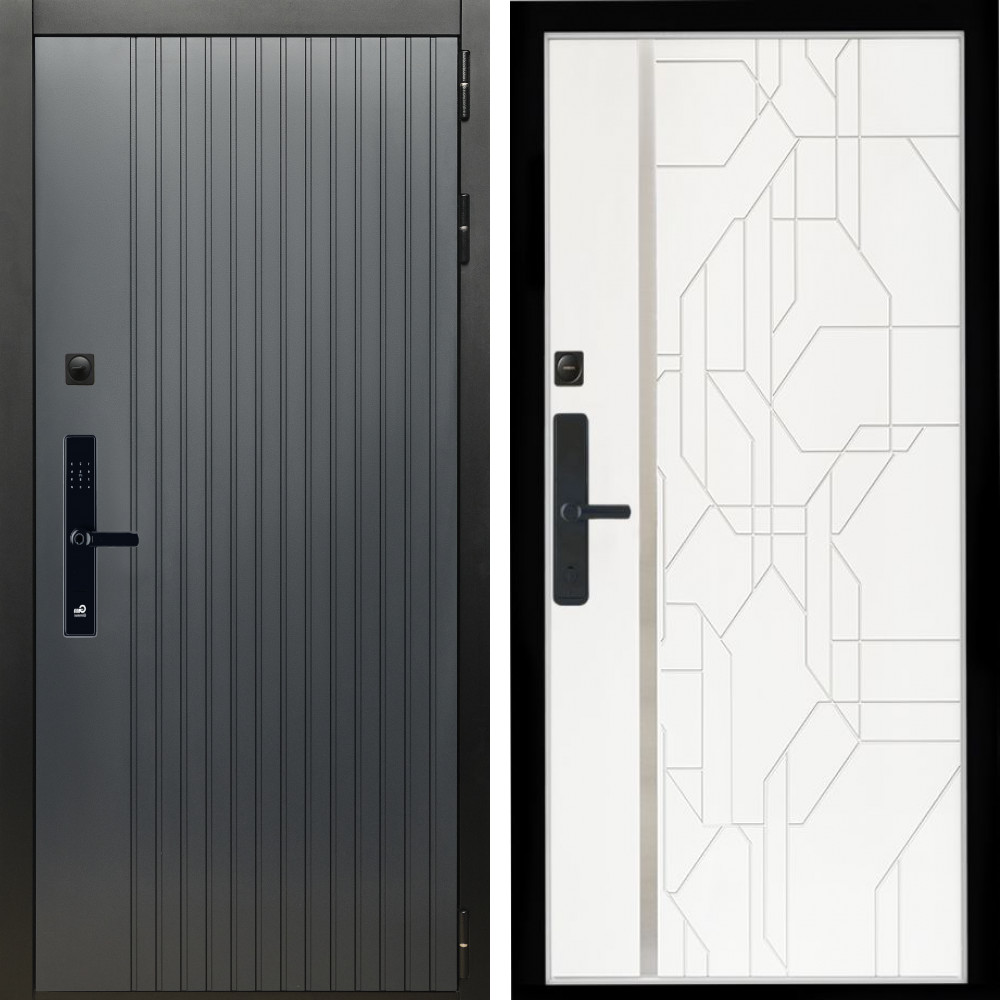Входная дверь Inteko Шторм Графит SMART + Эверест нерж белый матовый