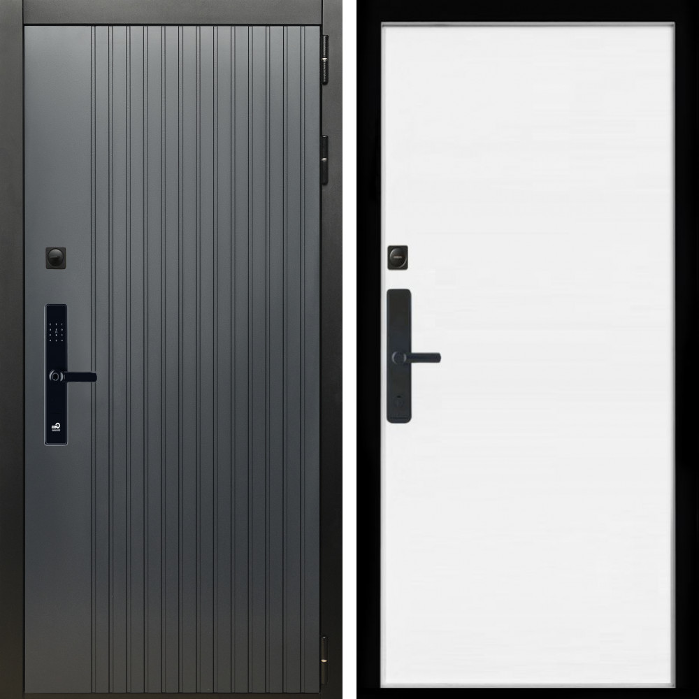 Входная дверь Inteko Шторм Графит SMART + Гладкая белый матовый