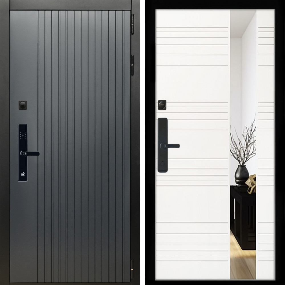 Входная дверь Inteko Шторм Графит SMART + Сити белый матовый