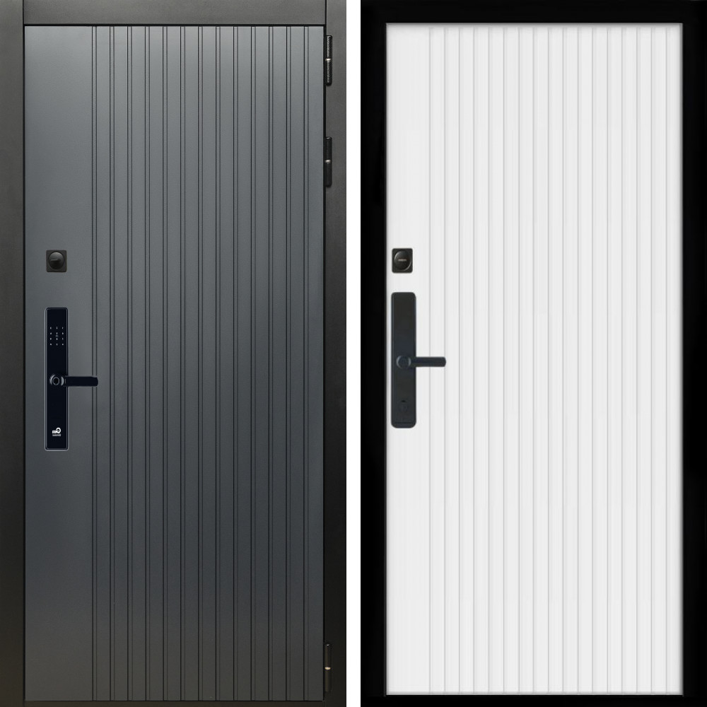 Входная дверь Inteko Шторм Графит SMART + Вертикаль белый матовый