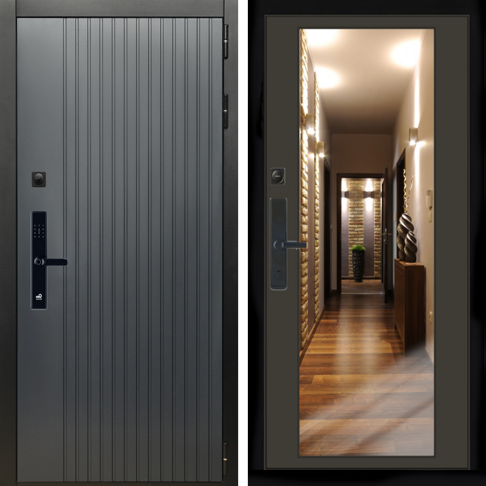 Входная дверь Inteko Шторм Графит SMART + Зеркало венге