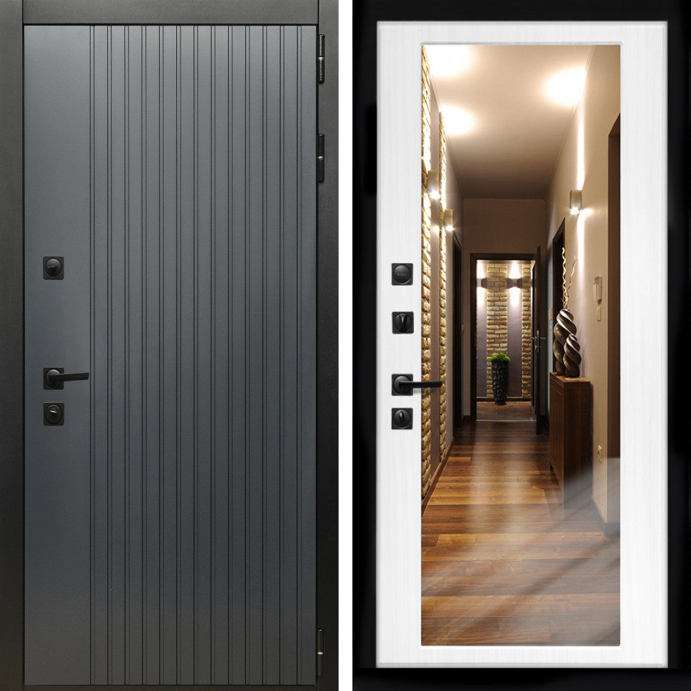 Входная дверь Inteko Шторм Графит + Зеркало беленый дуб