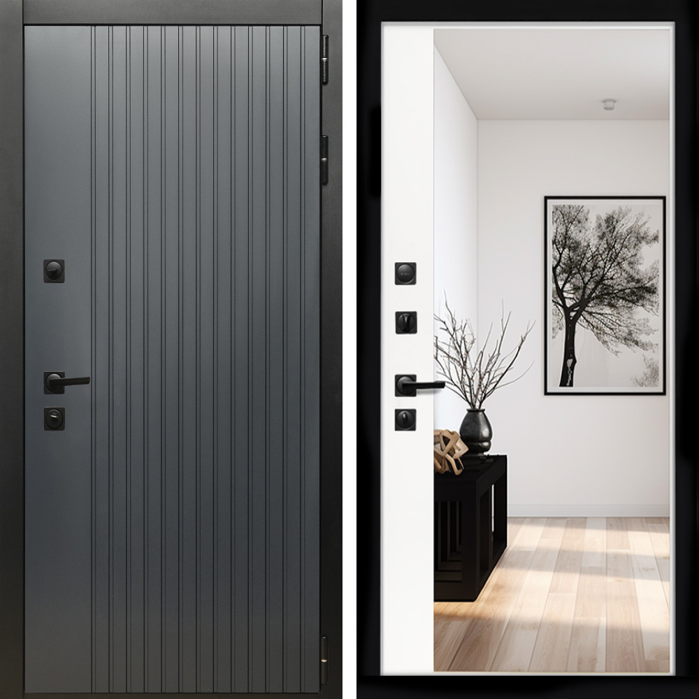 Входная дверь Inteko Шторм Графит + Зеркало панорама Белый софт