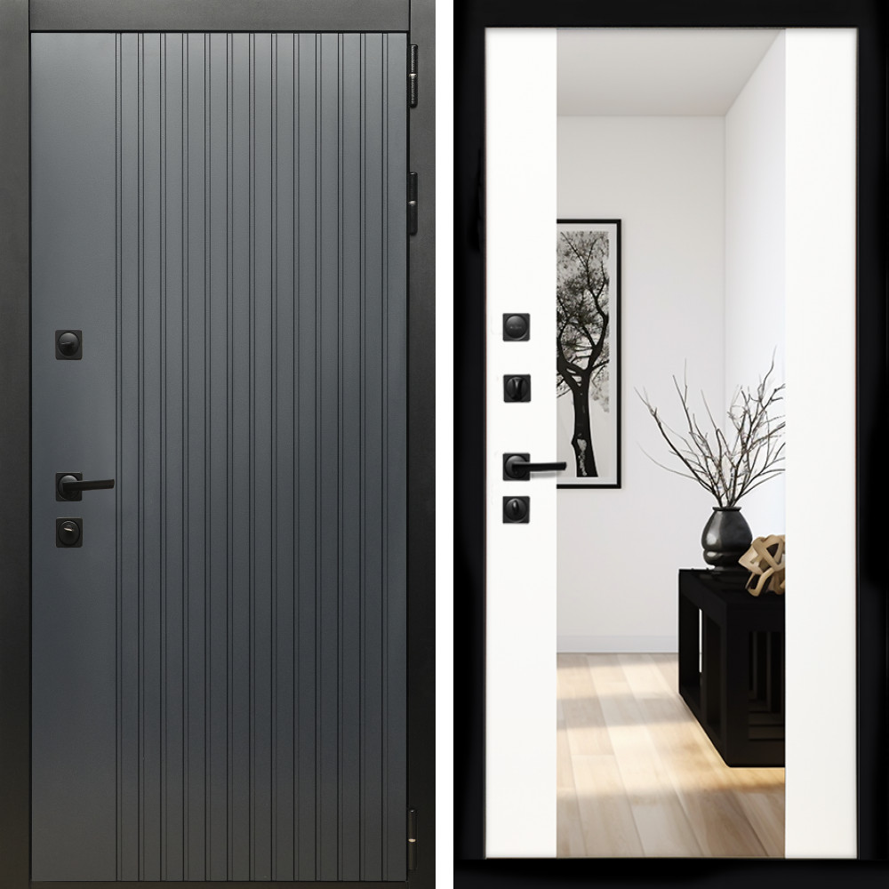 Входная дверь Inteko Шторм Графит + Зеркало сб-16 белый матовый