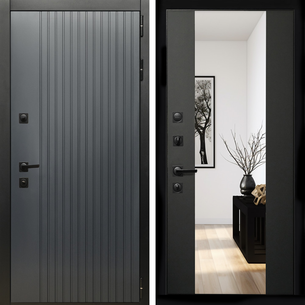 Входная дверь Inteko Шторм Графит + Зеркало сб-16 черный кварц