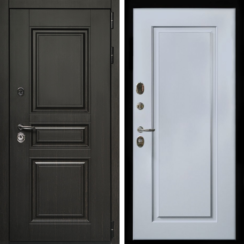 Входная дверь • Габаритные размеры: 2050x860 мм, 2050x960 мм • Металл 1.8мм • Внешнее покрытие: МДФ 16 мм. • Толщина полотна: 115 мм. • Толщина коробки: 120 мм. • Короб закрытого типа, утепленный • Уплотнитель: 3 контура • Два вертикальных ребра жесткости • Замок основной: Гардиан 6211 с блокировкой язычка • Замок дополнительный: Гардиан 6001 • Врезная броненакладка • Пазы на коробке под доборы • Независимая задвижка есть • Фурнитура Черная ..
