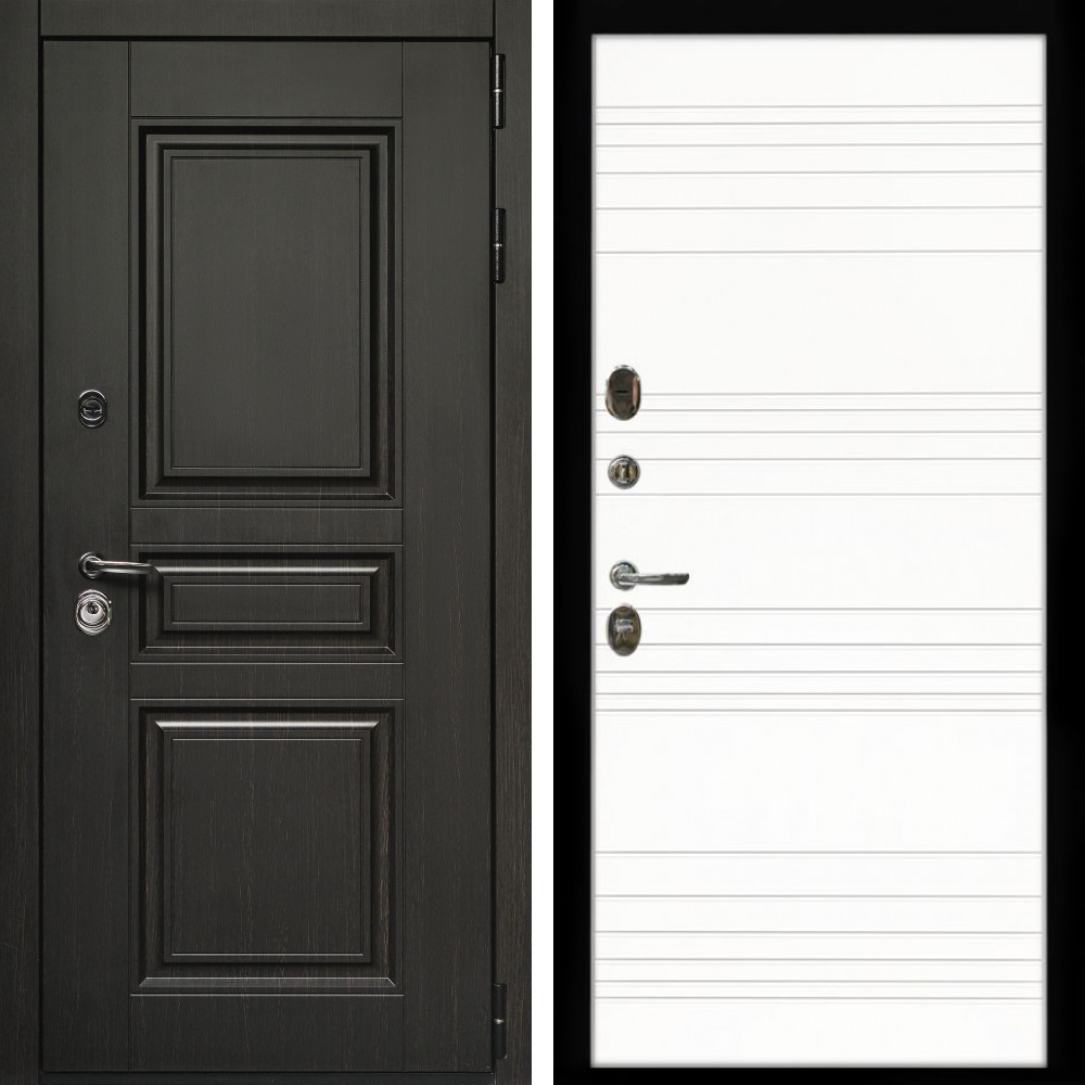 Входная дверь • Габаритные размеры: 2050x860 мм, 2050x960 мм • Металл 1.5мм. • Внешнее покрытие: МДФ 12 мм. • Цвет покрытия: Графит. • Толщина полотна: 100 мм. • Толщина коробки: 105 мм. • Окрас короба:Черная шагрень. • Короб закрытого типа, утепленный. • Уплотнитель: 3 контура. • Два вертикальных ребра жесткости. • Замок основной: Guardian 3211 (цилиндровый). • Замок дополнительный: Guardian 300 • Врезная броненакладка. • Независимая задвижка есть. • Фурнитура Черная. ..