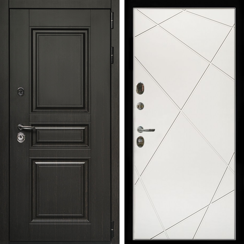 Входная дверь • Габаритные размеры: 2050x860 мм, 2050x960 мм • Металл 1.8мм • Внешнее покрытие: МДФ 16 мм. • Толщина полотна: 115 мм. • Толщина коробки: 120 мм. • Короб закрытого типа, утепленный • Уплотнитель: 3 контура • Два вертикальных ребра жесткости • Замок основной: Гардиан 6211 с блокировкой язычка • Замок дополнительный: Гардиан 6001 • Врезная броненакладка • Пазы на коробке под доборы • Независимая задвижка есть • Фурнитура Хром ..