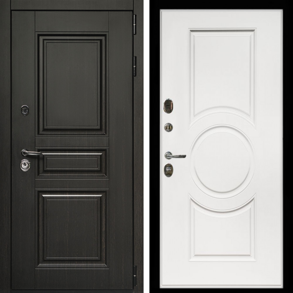 Входная дверь • Габаритные размеры: 2050x860 мм, 2050x960 мм • Металл 1.8мм • Внешнее покрытие: МДФ 16 мм. • Толщина полотна: 115 мм. • Толщина коробки: 120 мм. • Короб закрытого типа, утепленный • Уплотнитель: 3 контура • Два вертикальных ребра жесткости • Замок основной: Гардиан 6211 с блокировкой язычка • Замок дополнительный: Гардиан 6001 • Врезная броненакладка • Пазы на коробке под доборы • Независимая задвижка есть • Фурнитура ХРОМ ..