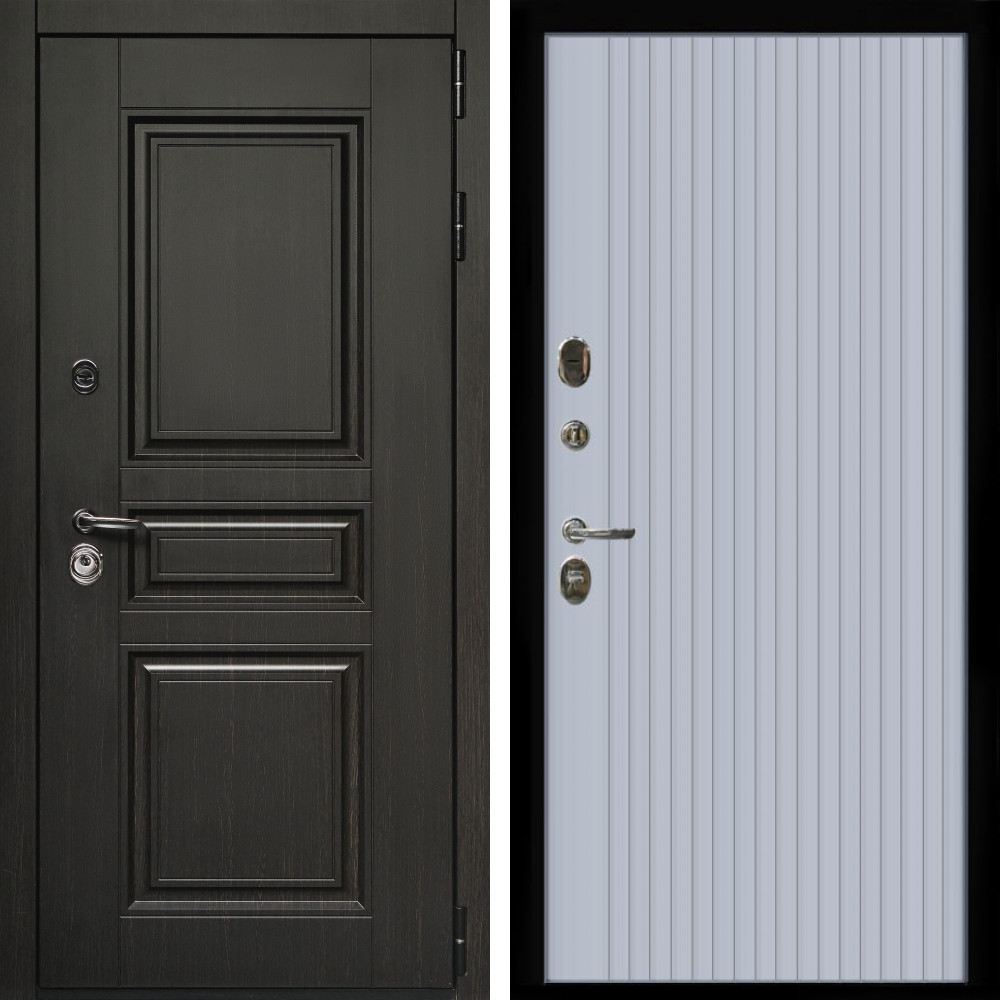 Входная дверь • Габаритные размеры: 2050x860 мм, 2050x960 мм • Металл 1.8мм • Внешнее покрытие: МДФ 16 мм. • Толщина полотна: 115 мм. • Толщина коробки: 120 мм. • Короб закрытого типа, утепленный • Уплотнитель: 3 контура • Два вертикальных ребра жесткости • Замок основной: Гардиан 6211 с блокировкой язычка • Замок дополнительный: Гардиан 6001 • Врезная броненакладка • Пазы на коробке под доборы • Независимая задвижка есть • Фурнитура ХРОМ ..