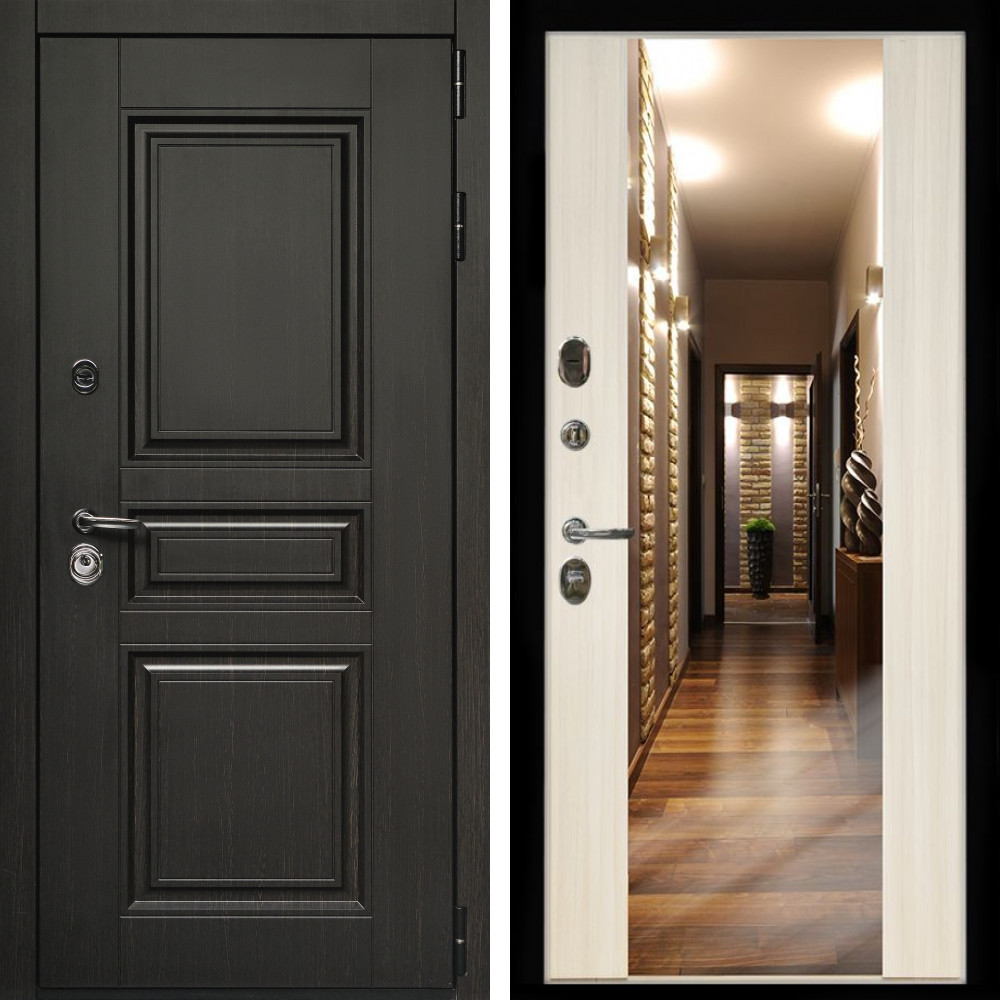 Входная дверь • Габаритные размеры: 2050x860 мм, 2050x960 мм • Металл 1.8мм • Внешнее покрытие: МДФ 16 мм. • Толщина полотна: 115 мм. • Толщина коробки: 120 мм. • Короб закрытого типа, утепленный • Уплотнитель: 3 контура • Два вертикальных ребра жесткости • Замок основной: Гардиан 6211 с блокировкой язычка • Замок дополнительный: Гардиан 6001 • Врезная броненакладка • Пазы на коробке под доборы • Независимая задвижка есть • Фурнитура ХРОМ ..