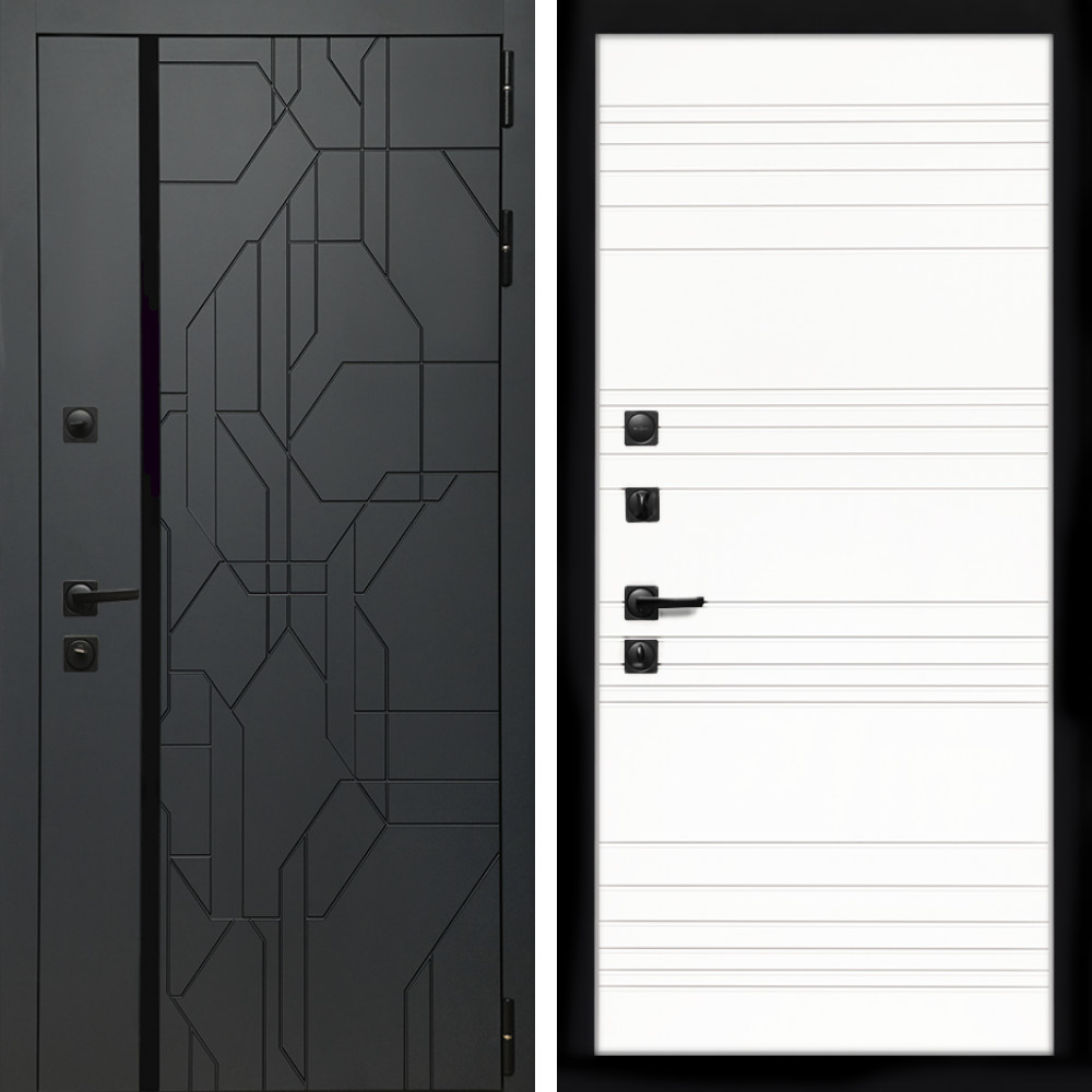 Входная дверь • Габаритные размеры: 2050x860 мм, 2050x960 мм • Металл 1.8мм. Черная шагрень • Внешнее покрытие: МДФ 12 мм. • Толщина полотна: 115 мм. • Толщина коробки: 120 мм. • Короб закрытого типа, утепленный • Уплотнитель: 3 контура • Два вертикальных ребра жесткости • ЭЛЕКТРОННЫЙ ЗАМОК НА ВЫБОР • Замок дополнительный: Гардиан 6001 • Врезная броненакладка • Пазы на коробке под доборы • Независимая задвижка есть • Фурнитура ЧЕРНАЯ ..