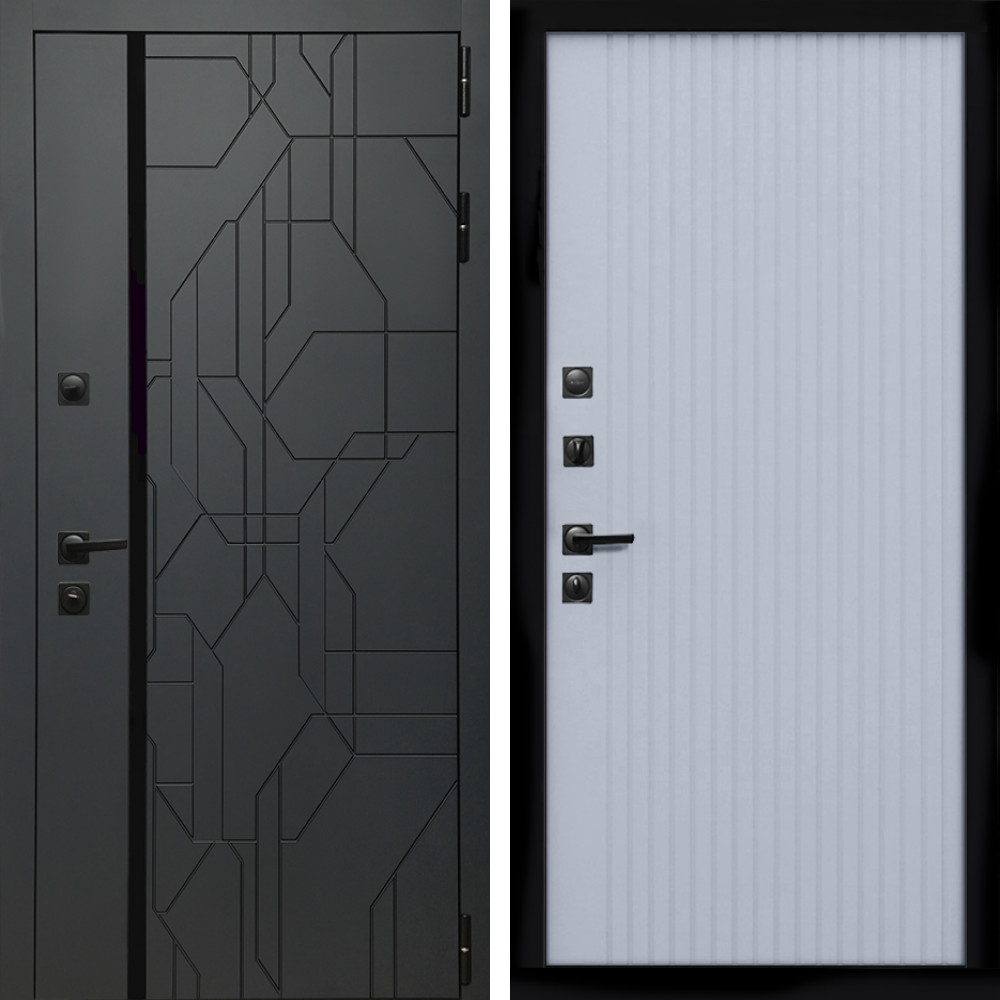 Входная дверь • Габаритные размеры: 2050x860 мм, 2050x960 мм • Металл 1.5мм. • Внешнее покрытие: МДФ 12 мм. • Цвет покрытия: Черный кварц. • Толщина полотна: 100 мм. • Толщина коробки: 105 мм. • Окрас короба:Черная шагрень. • Короб закрытого типа, утепленный. • Уплотнитель: 3 контура. • Два вертикальных ребра жесткости. • Замок основной: Guardian 3211 (цилиндровый). • Замок дополнительный: Guardian 300 • Врезная броненакладка. • Независимая задвижка есть. • Фурнитура Черная. ..