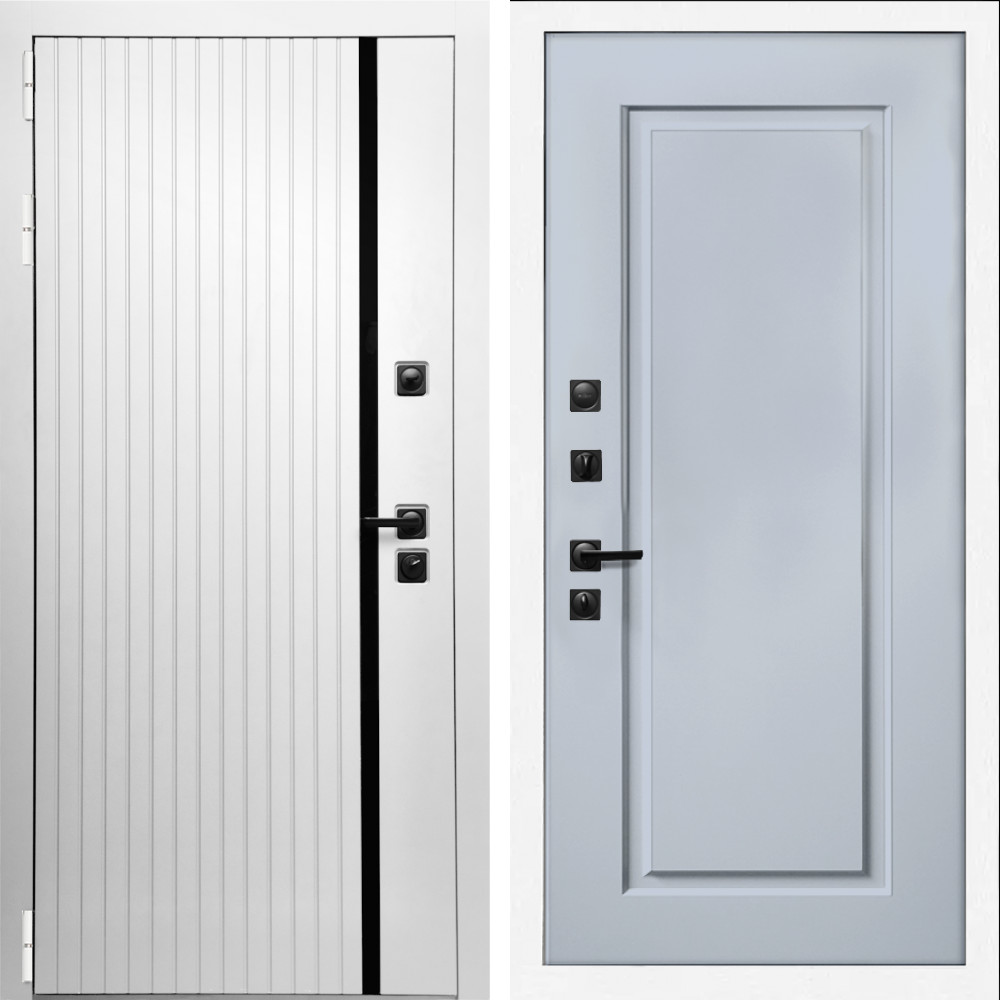 Входная дверь • Габаритные размеры: 2050x860 мм, 2050x960 мм • Металл 1.8мм. Черная шагрень • Внешнее покрытие: МДФ 12 мм. • Толщина полотна: 115 мм. • Толщина коробки: 120 мм. • Короб закрытого типа, утепленный • Уплотнитель: 3 контура • Два вертикальных ребра жесткости • ЭЛЕКТРОННЫЙ ЗАМОК НА ВЫБОР • Замок дополнительный: Гардиан 6001 • Врезная броненакладка • Пазы на коробке под доборы • Независимая задвижка есть • Фурнитура ЧЕРНАЯ