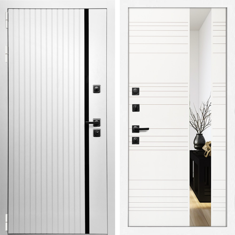 Входная дверь • Габаритные размеры: 2050x860 мм, 2050x960 мм • Металл 1.8мм • Внешнее покрытие: МДФ 16 мм. • Толщина полотна: 115 мм. • Толщина коробки: 120 мм. • Короб закрытого типа, утепленный • Уплотнитель: 3 контура • Два вертикальных ребра жесткости • Замок основной: Гардиан 6211 с блокировкой язычка • Замок дополнительный: Гардиан 6001 • Врезная броненакладка • Пазы на коробке под доборы • Независимая задвижка есть • Фурнитура Черная ..