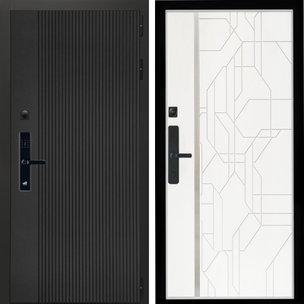 Входная дверь Inteko Вертикаль Блек SMART + Эверест нерж белый матовый